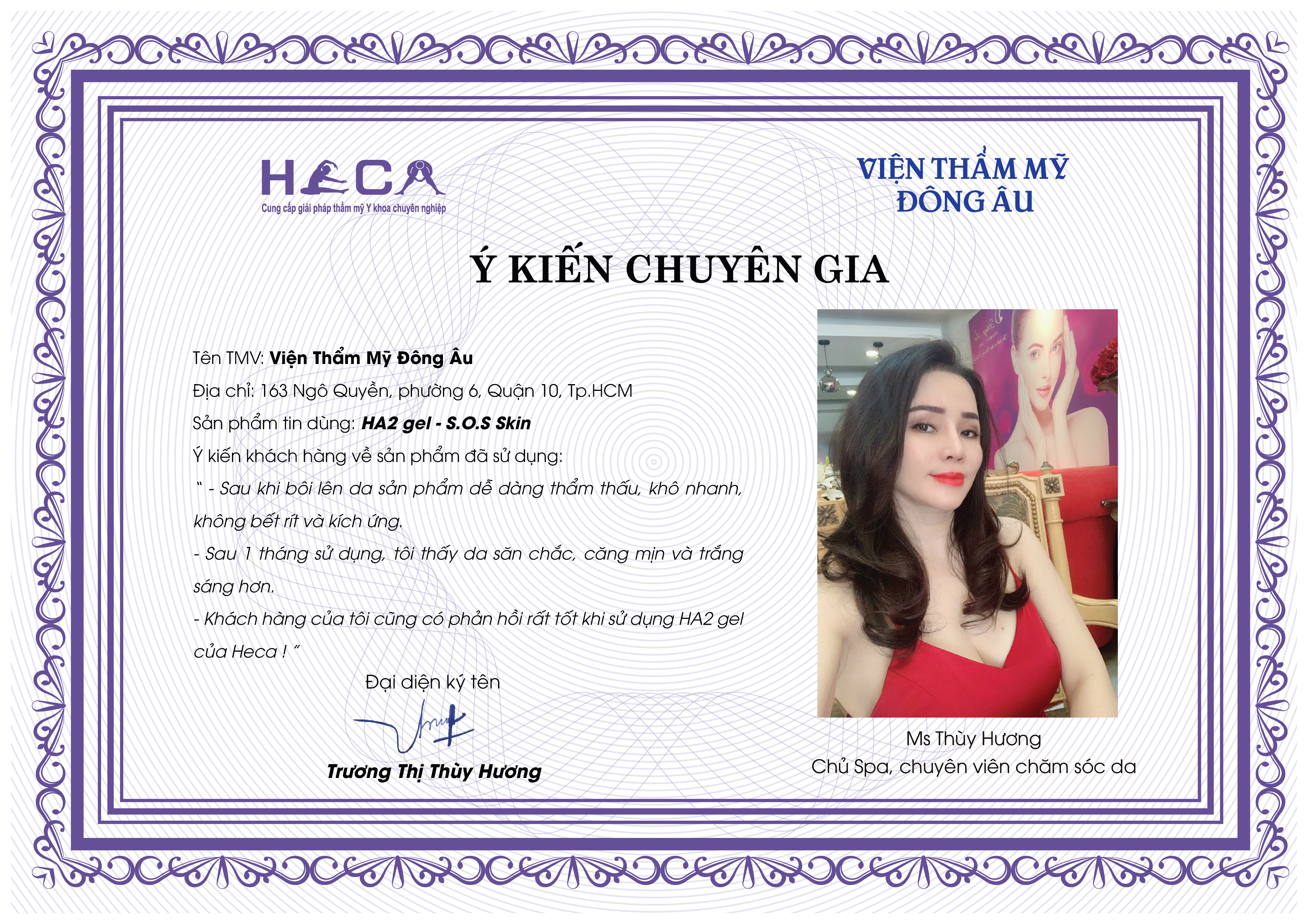 HECA tự tin rằng HA2 gel là 1 lựa chọn hiệu quả, an toàn, kinh tế và cực kỳ đơn giản cho việc trẻ hóa làn da mỗi ngày.
