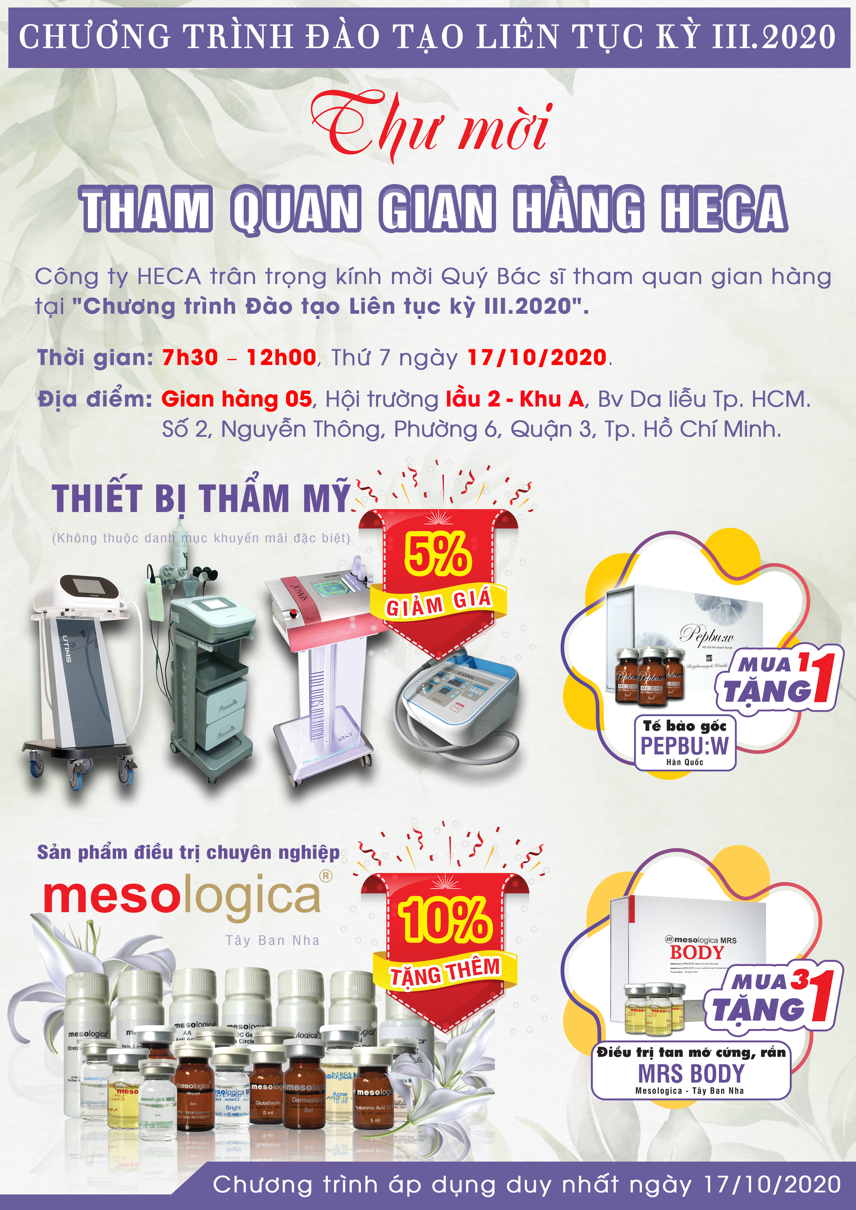 Công ty TNHH MTV Thương Mại HECA trân trọng kính mời Quý Bác sĩ tham quan gian hàng trưng bày HECA tại Chương Trình Đào Tạo Liên Tục Kỳ III.2020